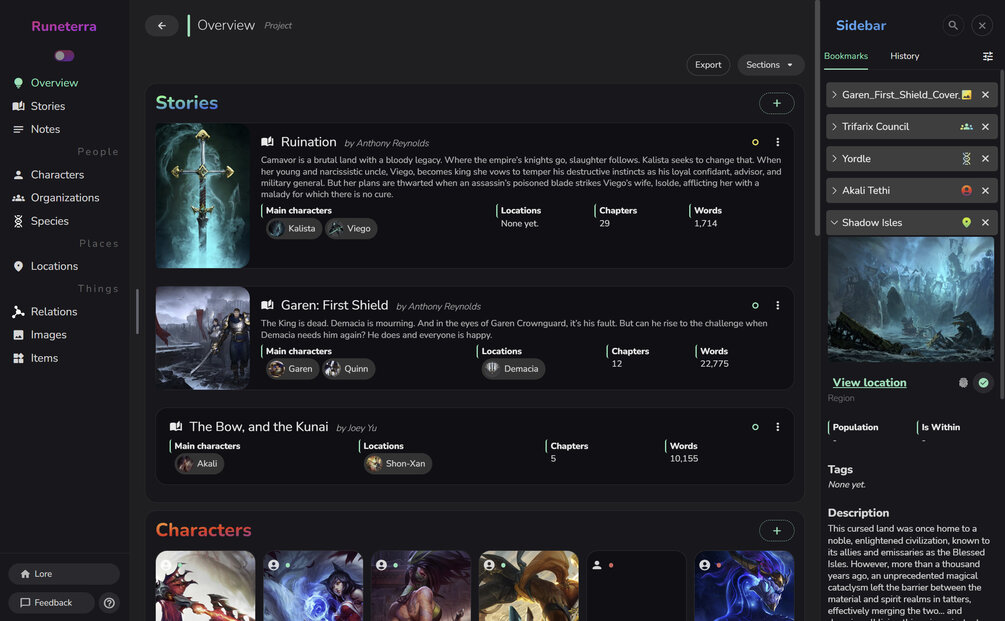 Keep track of your characters, places, things, and everything in-between.
